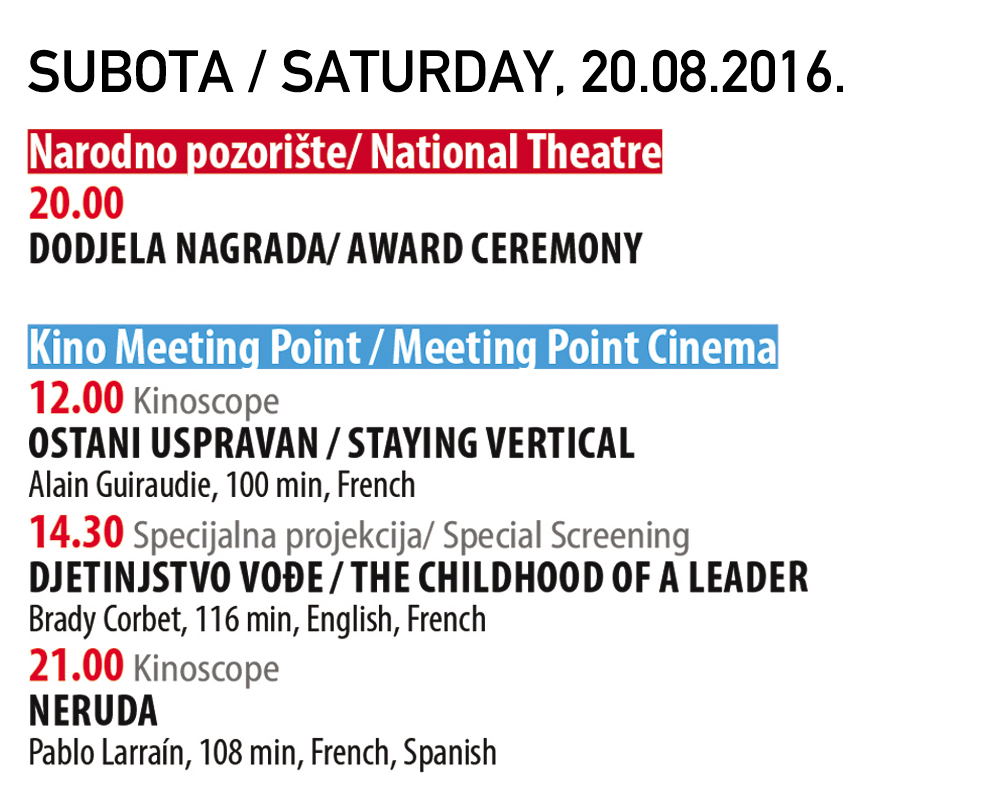 News Daily Screenings Schedule - Day 9 See what films are on today's schedule for the 22nd Sarajevo Film Festival!