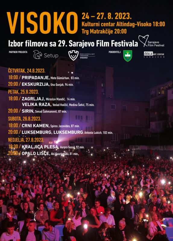 Od 24. do 27. augusta u Visokom će biti održane projekcije izbora filmova iz programa 29. Sarajevo Film Festivala. Ulaz na sve projekcije je besplatan.