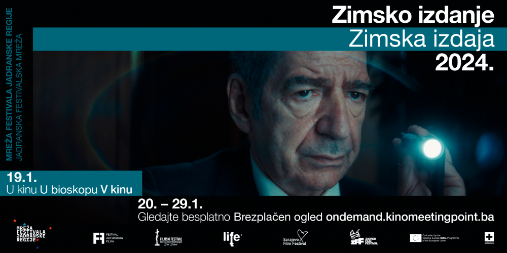 Drugo po redu Zimsko izdanje, zajednički projekt vodećih regionalnih filmskih festivala okupljenih u Mreži festivala Jadranske regije: Sarajevo Film Festivala, Festivala autorskog filma Beograd, Filmskog festivala Herceg Novi, Ljubljanskog međunarodnog filmskog festivala i Zagreb Film Festivala, od 20. do 29. januara na platformi ondemand.kinomeetingpoint.ba donosi pet recentnih uspješnica u kojima će publika moći uživati besplatno.