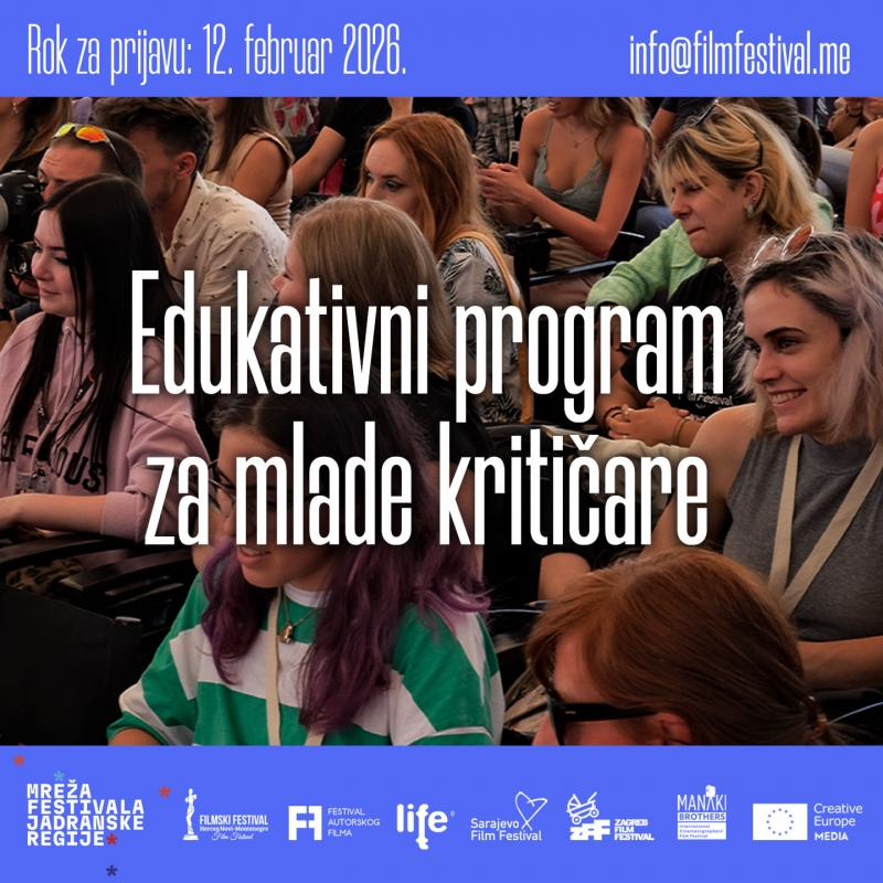 Mreža festivala Jadranske regije (Sarajevo Film Festival, Filmski Festival Herceg Novi, Zagreb Film Festival, Festival autorskog filma Beograd, Ljubljanski međunarodni filmski festival i festival Manaki brothers), poziva studente filmskih akademija i srodnih fakulteta, koji su zainteresovani da uče o pisanju filmske kritike, da se prijave na radionicu koja će se održati od 06. do 11.03. u Herceg Novom.
