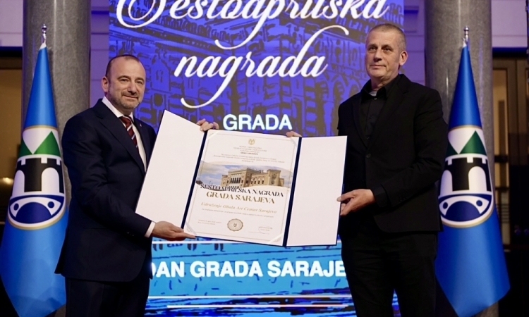 Nagradu je na svečanosti održanoj u gradskoj Vijećnici u ponedjeljak, 6. aprila 2026., preuzeo jedan od osnivača i predsjednik Skupštine Obala Art Centra Sarajevo Dževad Mujan.