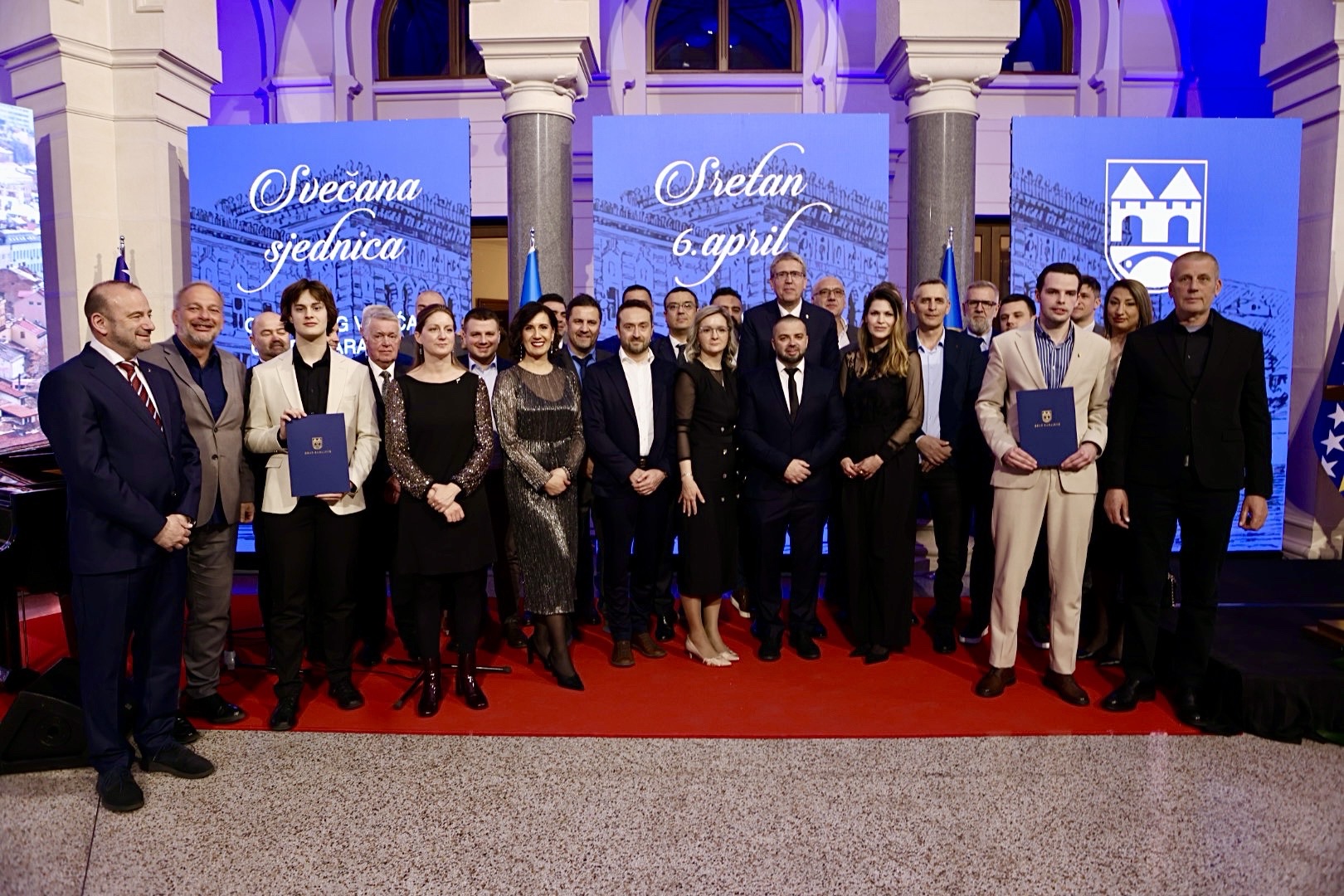 Šestoaprilske nagrade ovogodišnjim dobitnicima uručili su gradonačelnik Sarajeva Samir Avdić i predsjedatelj Gradskog vijeća Alen Girt na Svečanoj sjednici.